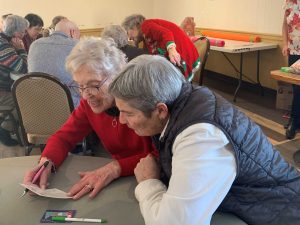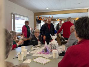 “The weather outside was frightful”, but inside the clubhouse at the golf course, it was quite delightful! A record number of CERTA members braved the cold for the annual Christmas event of socializing, games, gifts, and a delicious turkey dinner.